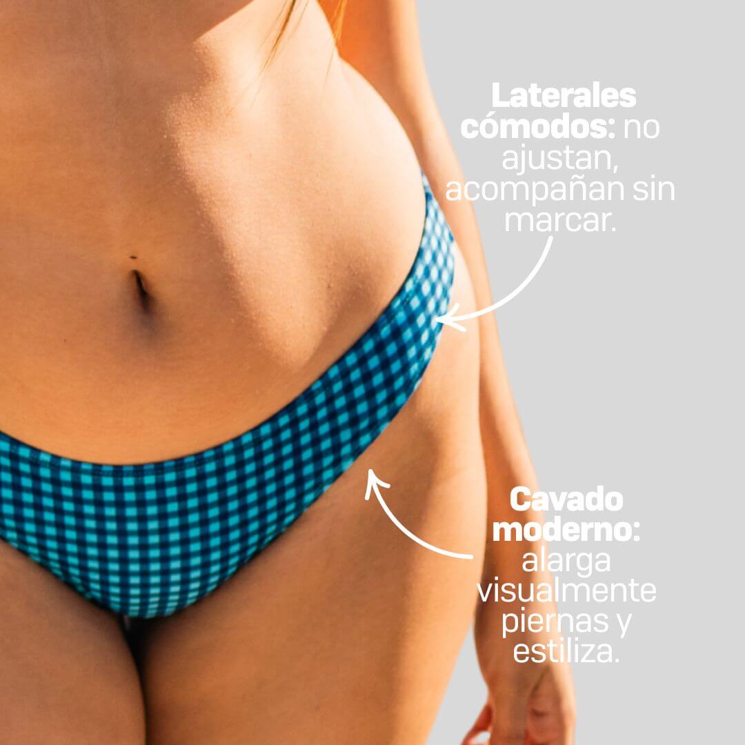 Una bombacha pensada para estilizar y dar libertad. El calce cavado alarga visualmente la pierna y los vivos combinados refuerzan el efecto visual.