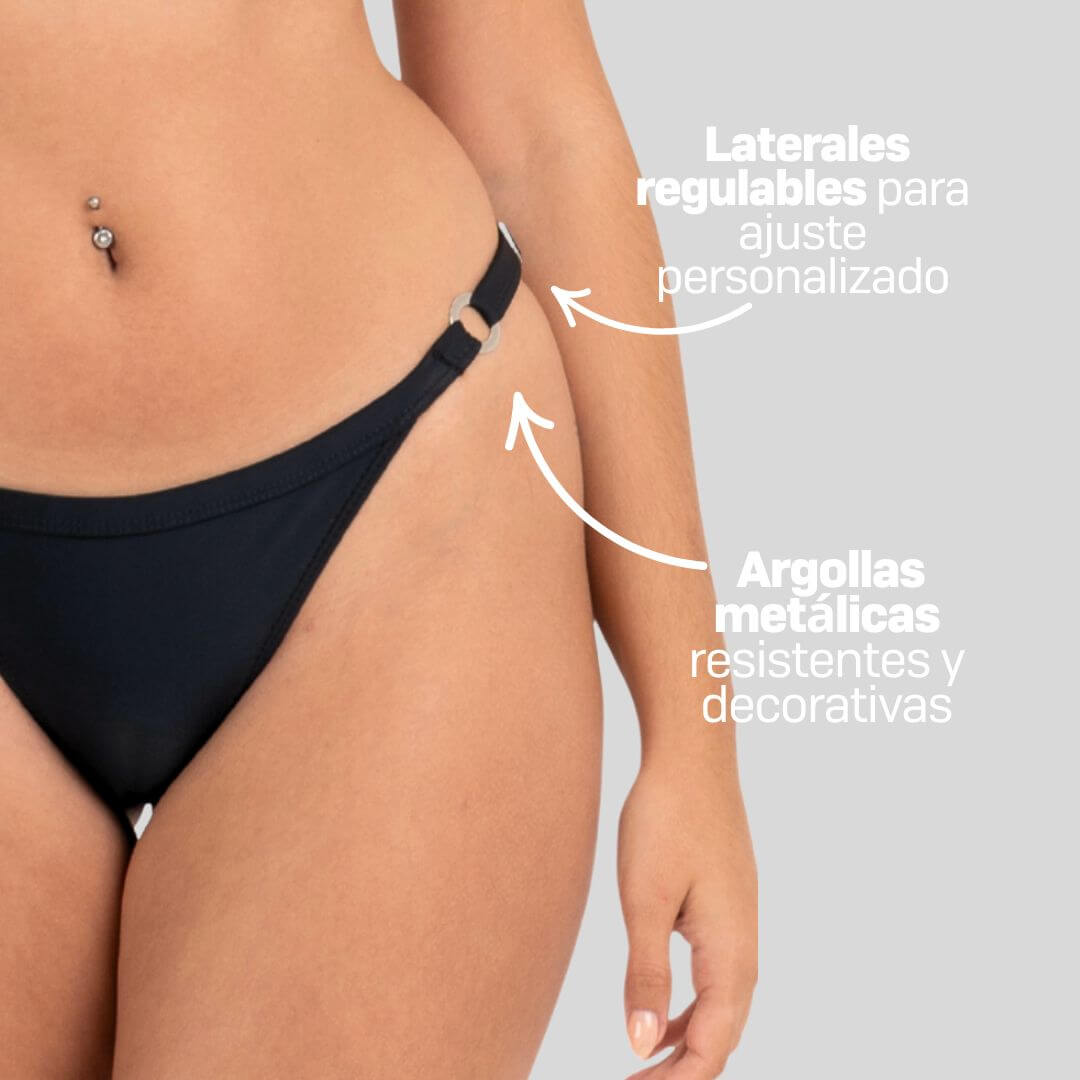 Esta less con laterales regulables se adapta a vos. Los tirantes anchos con argollas metálicas no solo suman diseño, también aportan comodidad.