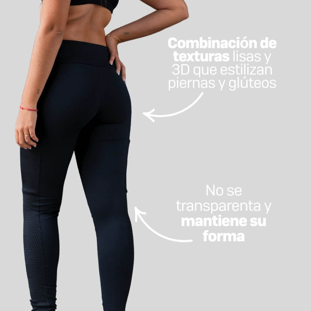 La Calza Vida es el obligatorio de la Línea RÍO: su corte anatómico y las texturas 3D estratégicamente ubicadas estilizan la figura y acompañan el movimiento sin marcar.