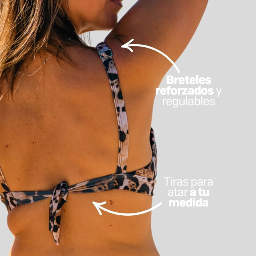 Se adapta a vos gracias a su contorno regulable y breteles ajustables y reforzados.
