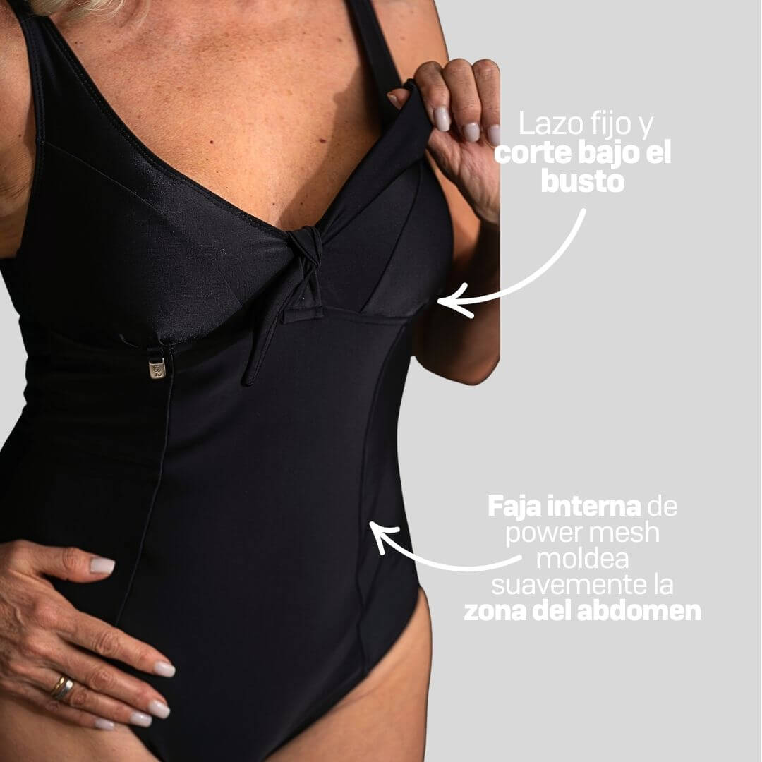 La Entera Nikka fue pensada para quienes quieren combinar funcionalidad, estilo y comodidad. Su escote en V, corte bajo el busto y su lazo decorativo hacen que te veas bien desde todos los ángulos. Pero además, tiene estructura interna que te sujeta sin apretar. Es una de esas mallas que abrazan el cuerpo y te hacen sentir segura.