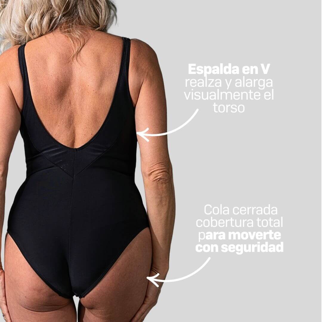✔️ Escote en V en delantera y espalda: realza y alarga visualmente el torso