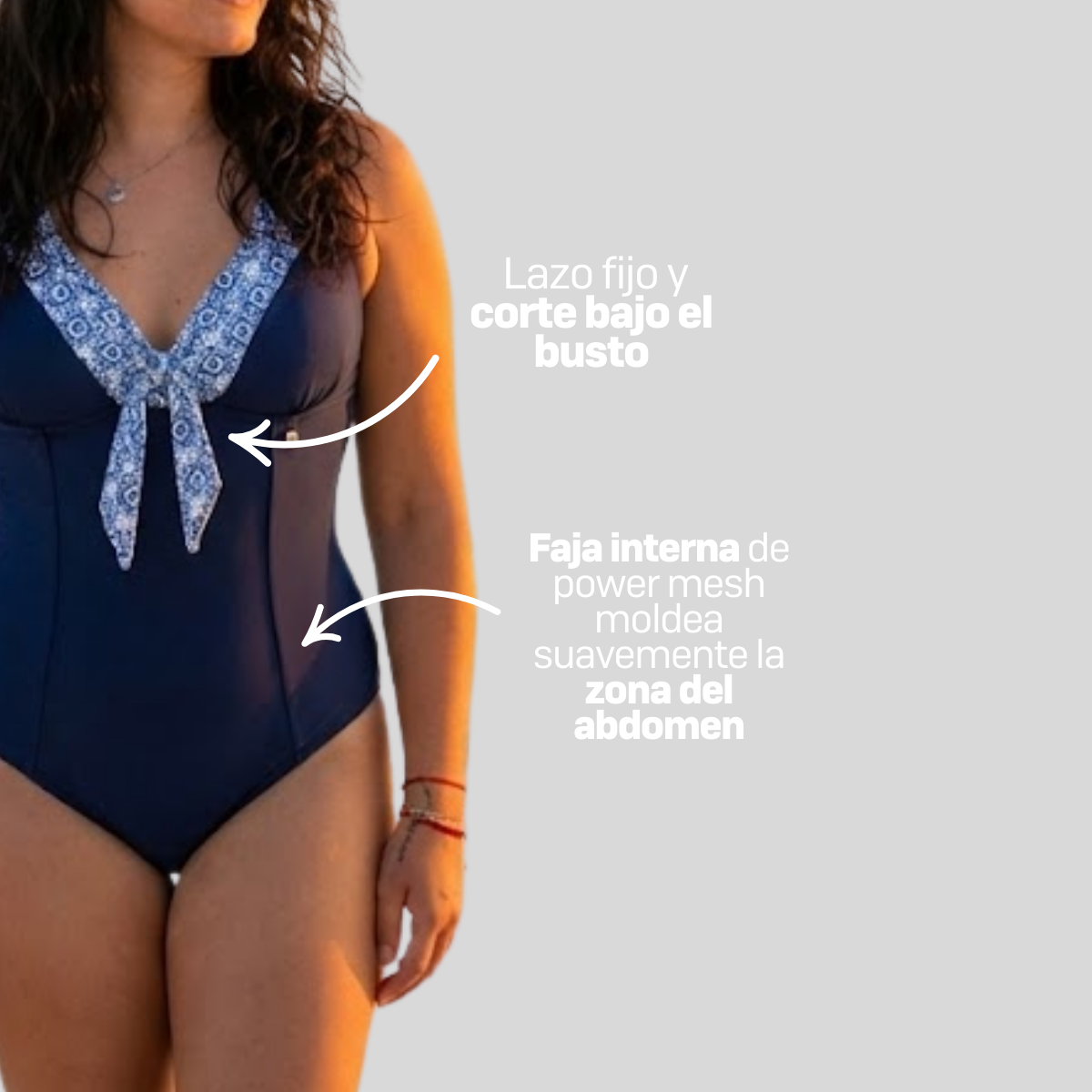 ✔️ Faja interna de power mesh: moldea suavemente la zona del abdomen