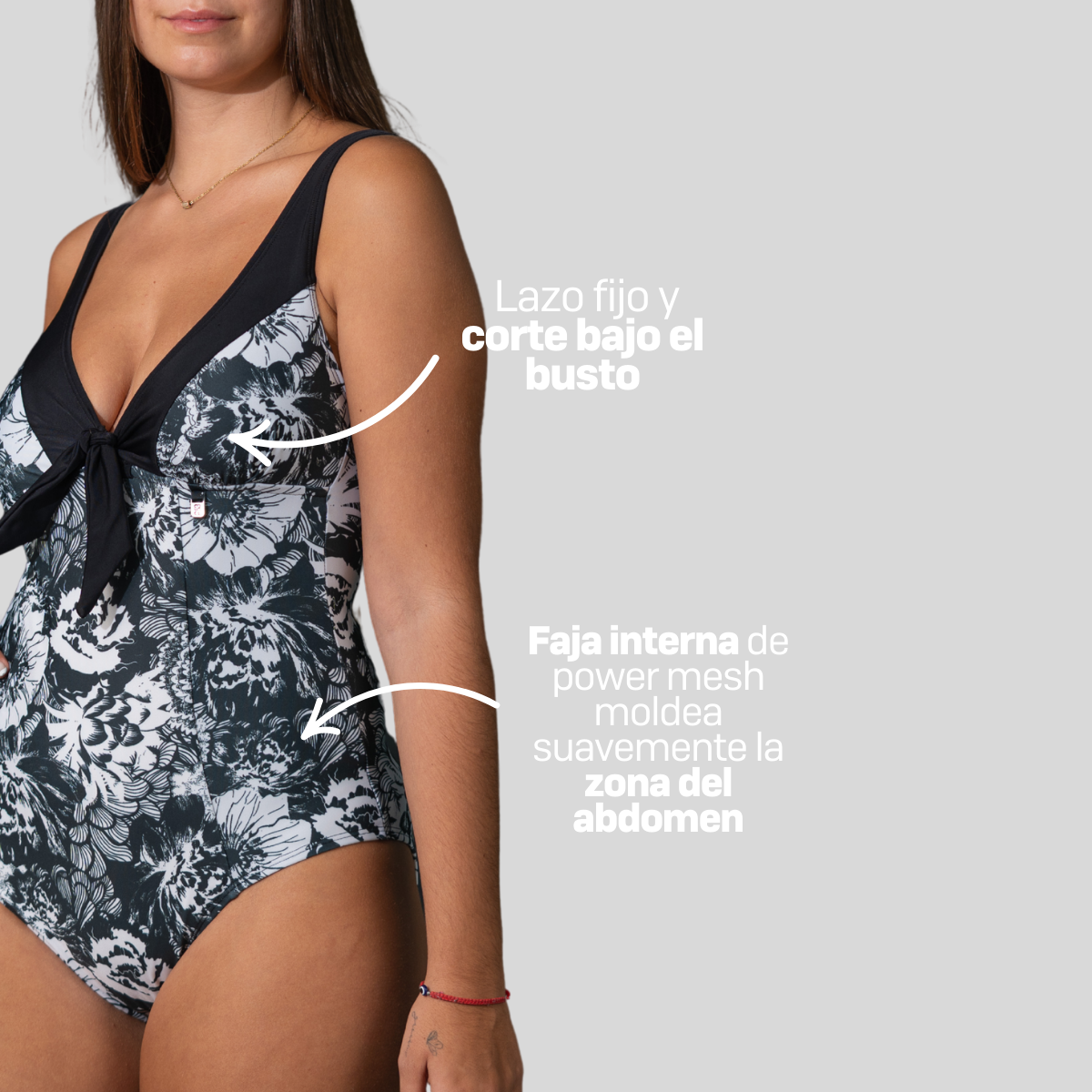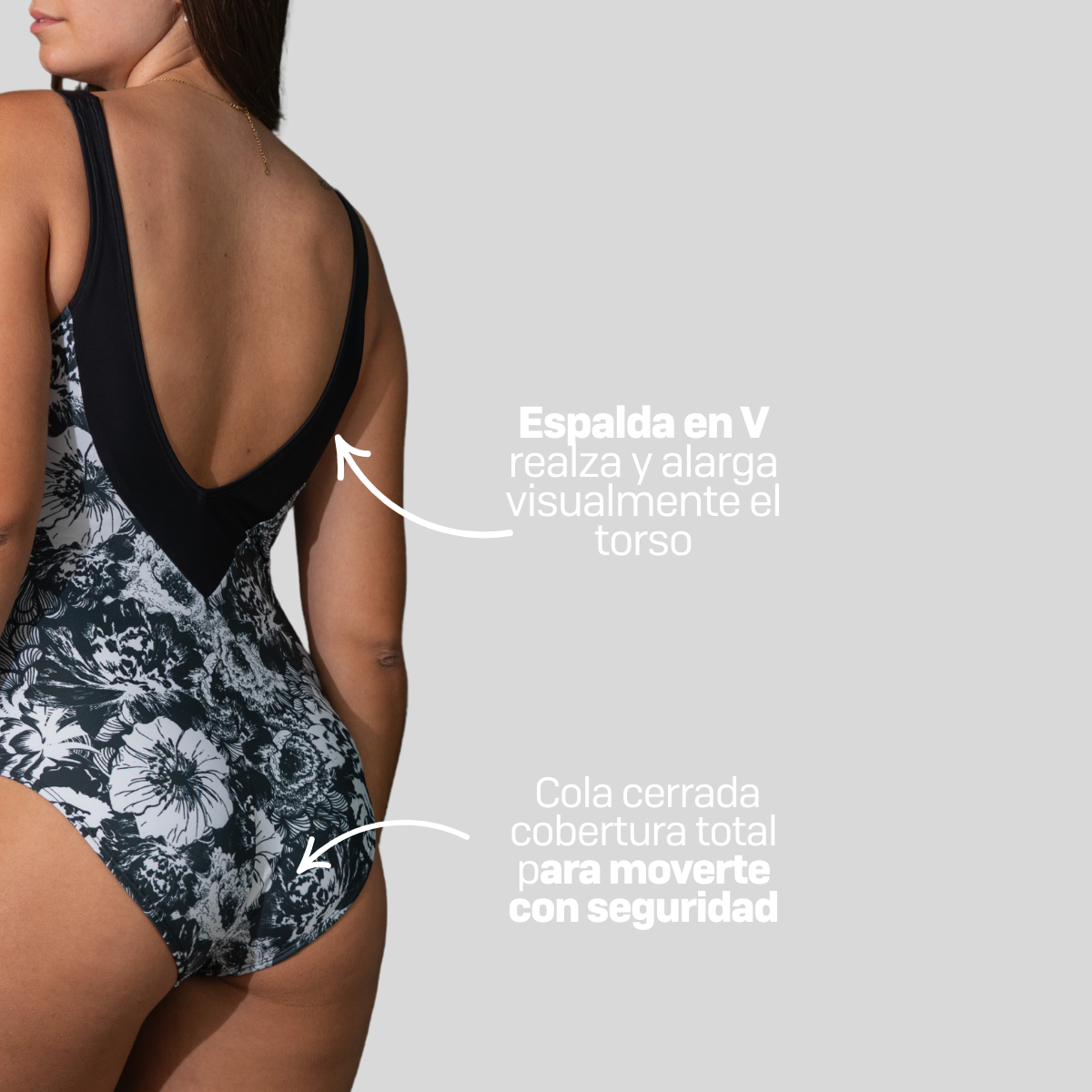 La Entera Nikka Le Lush Blanco y Negro fue pensada para quienes quieren combinar funcionalidad, estilo y comodidad. Su escote en V, corte bajo el busto y su lazo decorativo hacen que te veas bien desde todos los ángulos. Pero además, tiene estructura interna que te sujeta sin apretar. Es una de esas mallas que abrazan el cuerpo y te hacen sentir segura.
