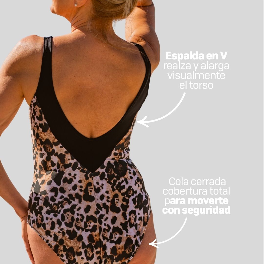 La Entera Nikka Leopardo fue pensada para quienes quieren combinar funcionalidad, estilo y comodidad. Su escote en V, corte bajo el busto y su lazo decorativo hacen que te veas bien desde todos los ángulos. Pero además, tiene estructura interna que te sujeta sin apretar. Es una de esas mallas que abrazan el cuerpo y te hacen sentir segura.