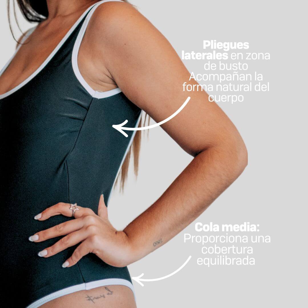 ✔️ Pliegues laterales en busto, que acompañan y disimulan con suavidad.