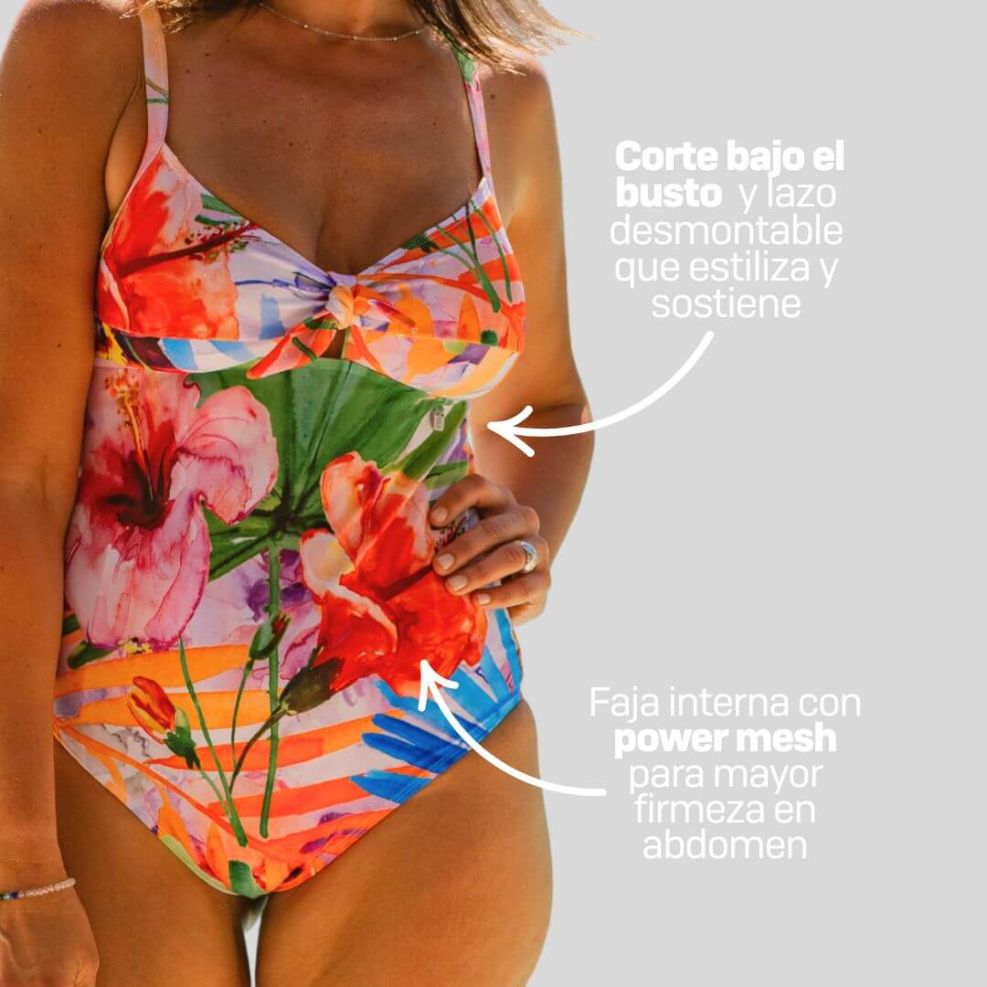 Con detalles estratégicos como recortes bajo busto, faja interna reductora y breteles ajustables, esta enteriza logra un calce que estiliza sin perder comodidad.