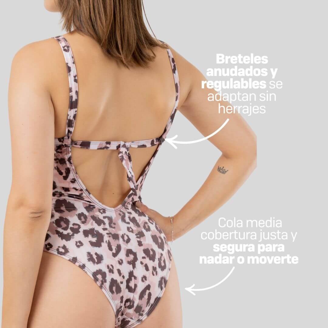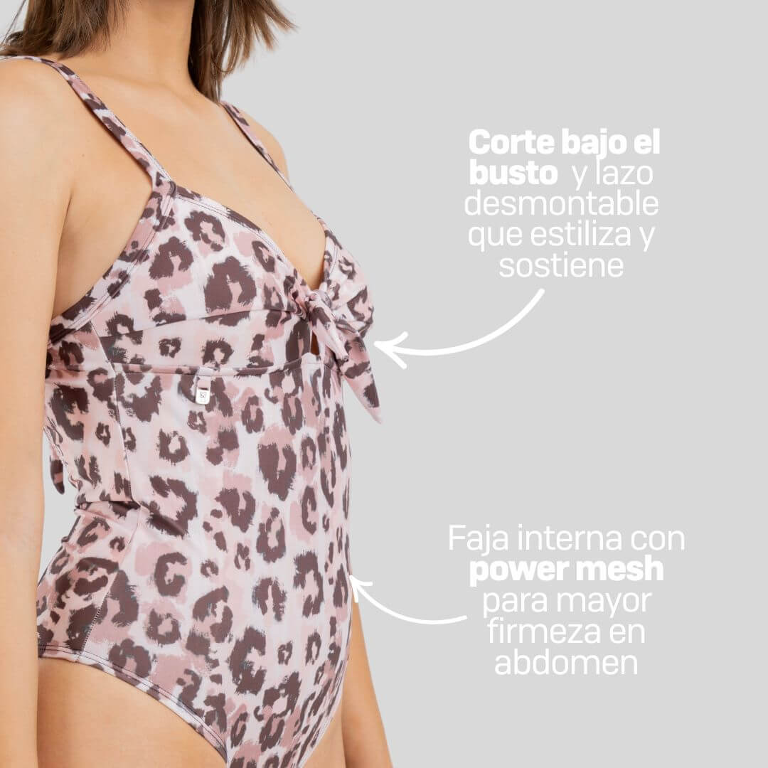 Con detalles estratégicos como recortes bajo busto, faja interna reductora y breteles ajustables, esta enteriza logra un calce que estiliza sin perder comodidad.