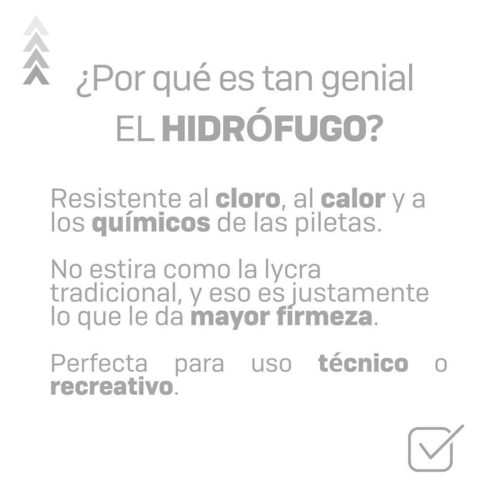El hidrófugo es un tejido exclusivo compuesto por poliéster con elasticidad moderada gracias a su construcción.