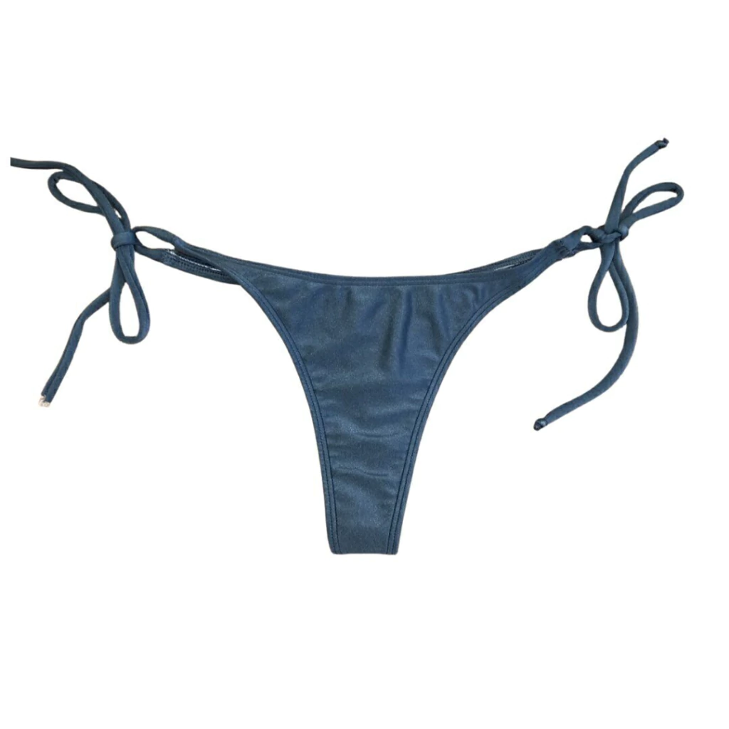Esta less es una bomba! tiene laterales con tirillas para atar para que lo adaptes más fácil a tu contorno de cadera. El calce de este less es pequeño, bajo, tiro angosto y cola pequeña. Como todas nuestras bombachas, viene forrada en delantera y espalda. Destaca por la textura brillante y acabado sedoso.