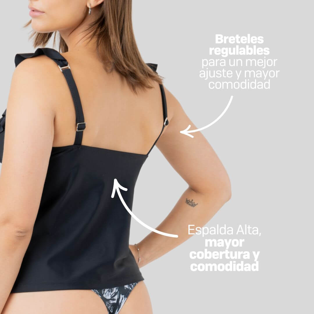 La Tankini con Volados combina elegancia, comodidad y un diseño pensado para acompañarte con naturalidad.